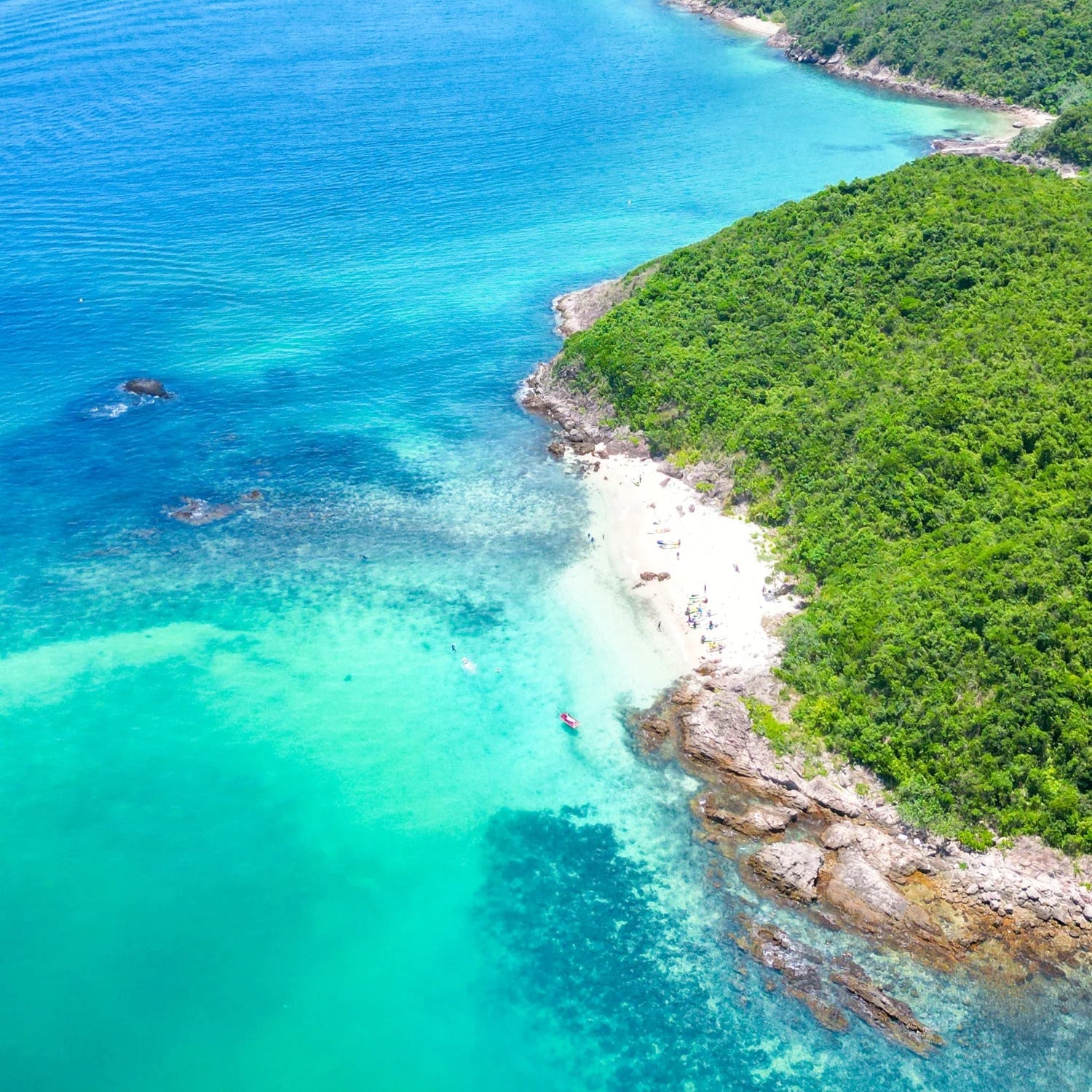 Long Mong Wan, located on east side of Sharp Island in Sai Kung, Hong Kong, is a breathtaking beach renowned for its stunning natural beauty and vibrant marine life.