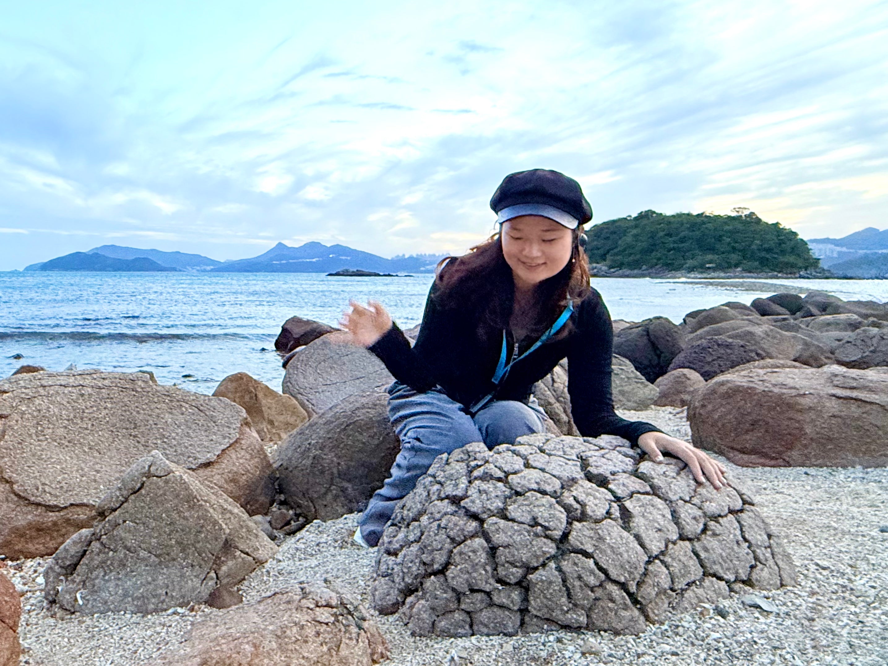 橋咀島上的標誌性火山岩,岩石表面形狀像菠蘿包,岩石表面有裂紋,猶如菠蘿包酥脆的外層。